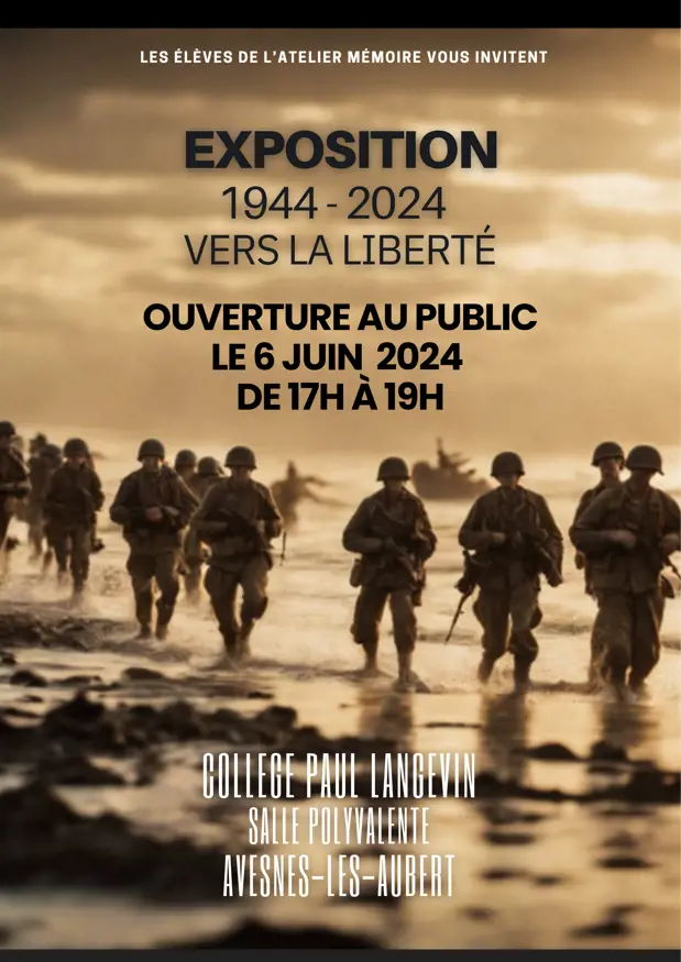 « Vers la Liberté », 1944-2024 Les élèves de 3ème du projet Mémoire avec leurs enseignants, Mme Duva et M. Gehringer, vous invitent à l’exposition qu’ils ont créée et qui se centre sur une année charnière de la guerre : 1944, année du débarquement. Cette exposition mettra aussi à l’honneur Missak Manouchian dont la panthéonisation a eu lieu cette année. Vous y découvrirez des reconstitutions, des maquettes, des recherches, des documents et objets datant de la Seconde Guerre Mondiale. Des guides en tenues d’époque vous accompagneront ... « vers la Liberté ». En ouvrant l’expositio... Lire la suite
